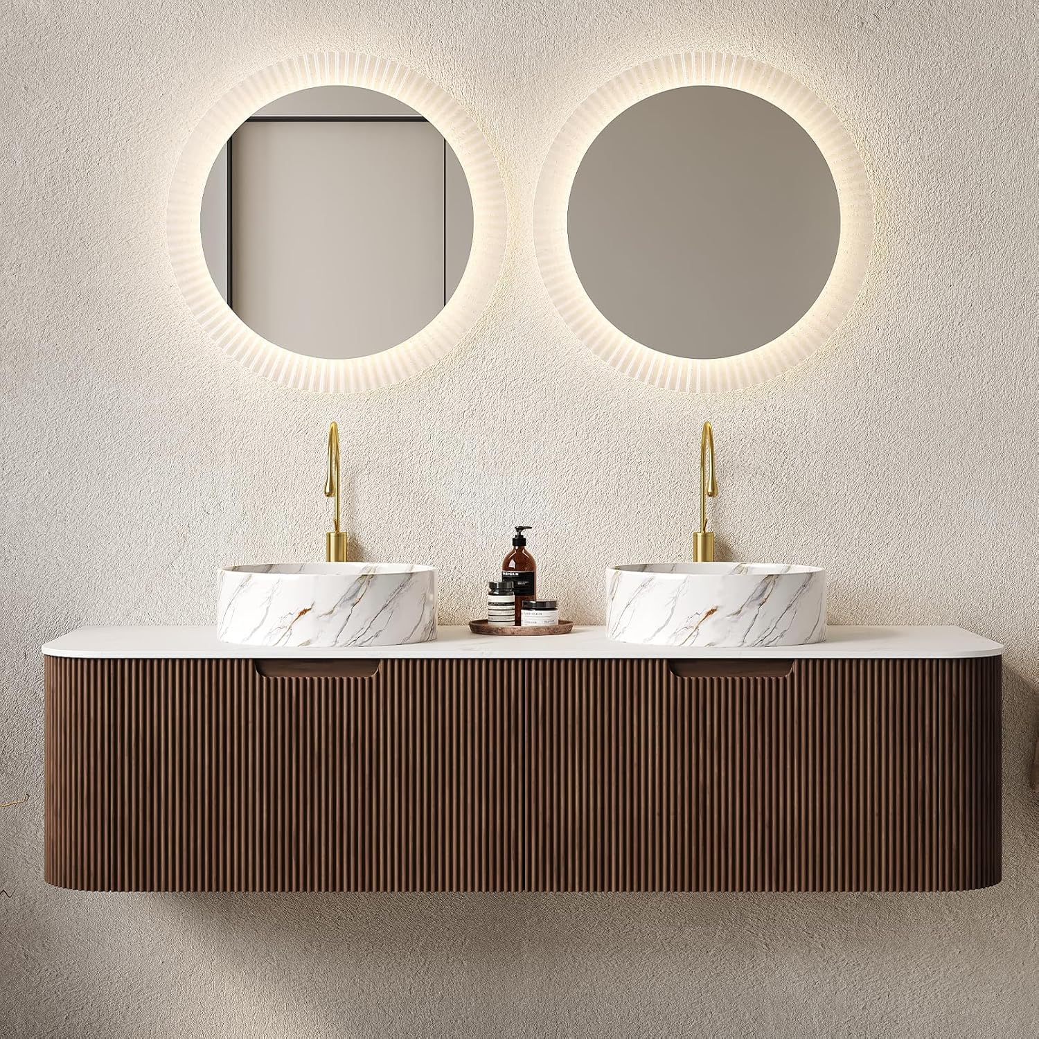 | Color | Natural Woodgrain - White Marble-pattern Round Basin |